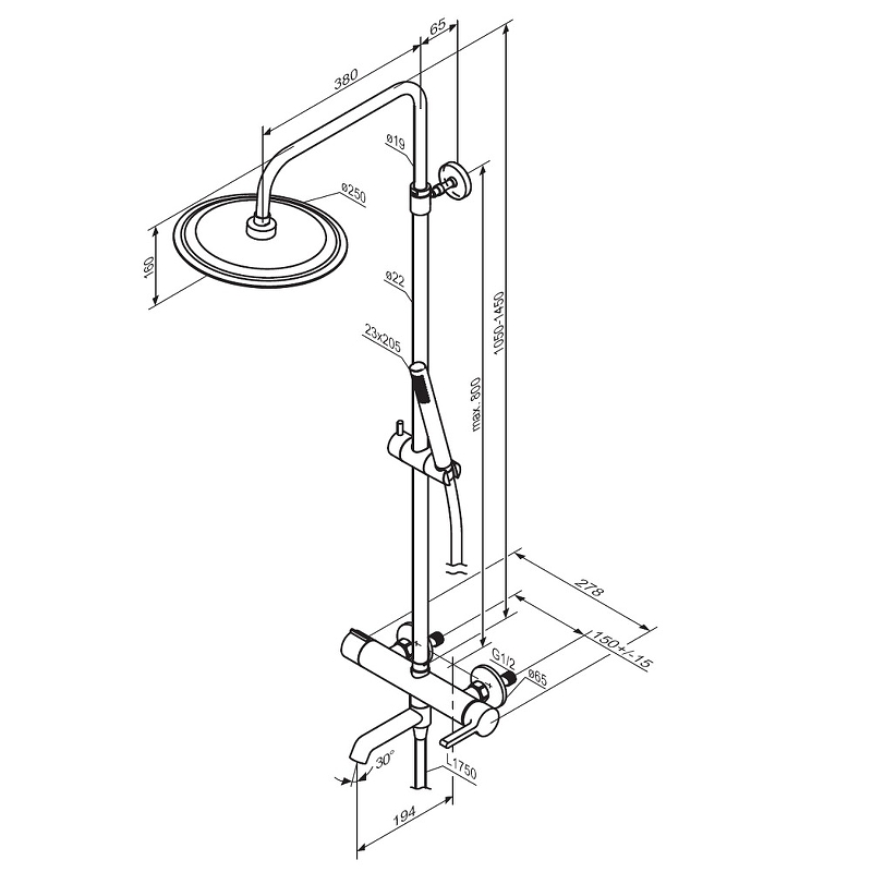 - Держатель ручного душа: регулируется в трех плоскостях.