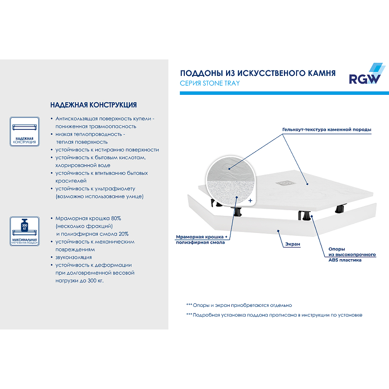 Душевой поддон из искусственного камня RGW Stone Tray ST/T-Co 100x100 16155100-10.