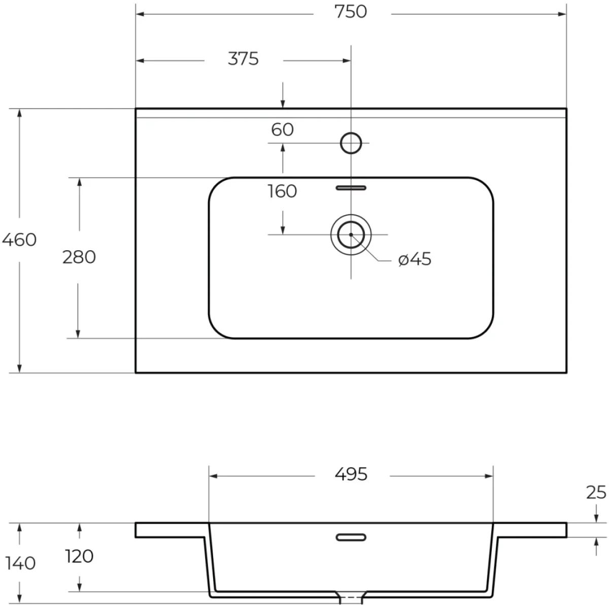 - С отверстием под смеситель.