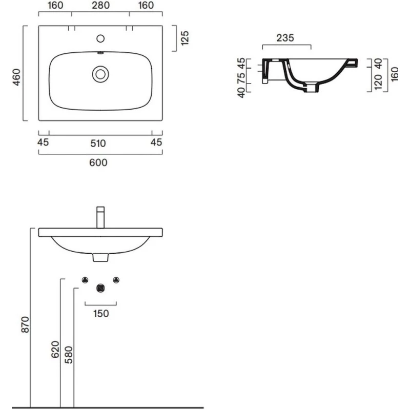 Раковина Catalano Green 0420600001 60x47 см, накладная, подвесная, белый глянец