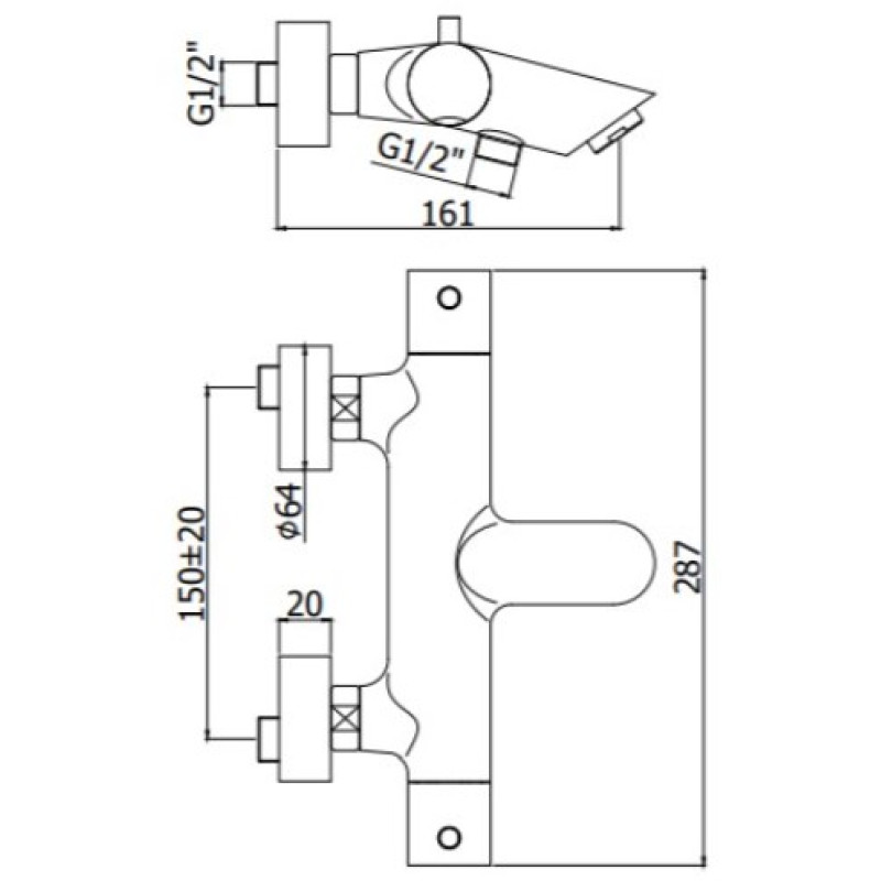 Смеситель Paffoni Modular Box MDE001CR для ванны и душа, термостат, встраиваемый, с внутренней частью, 2 потребителя, хром глянцевый