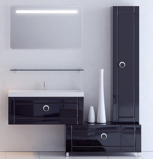 Длинная тумба Aqwella 5 stars Н8 поможет создать стильную и гармоничную композицию с другими продуктами линейки Инфинити. Для получения яркого цвета применяется глянцевая черная эмаль. Испанский производитель FINSA гарантирует высокое качество МДФ, используемой для изготовления фасадных и боковых частей. Ящик оборудован системой плавного закрывания Blum – одного из лидеров в производстве фурнитуры. Для организации системы хранения предусмотрено разделение на отсеки. Декор Eolo на внутренних стенках ящика придает особую изысканность. Дополняют комплект раковина из искусственного мрамора и опорные ножки для напольной установки.