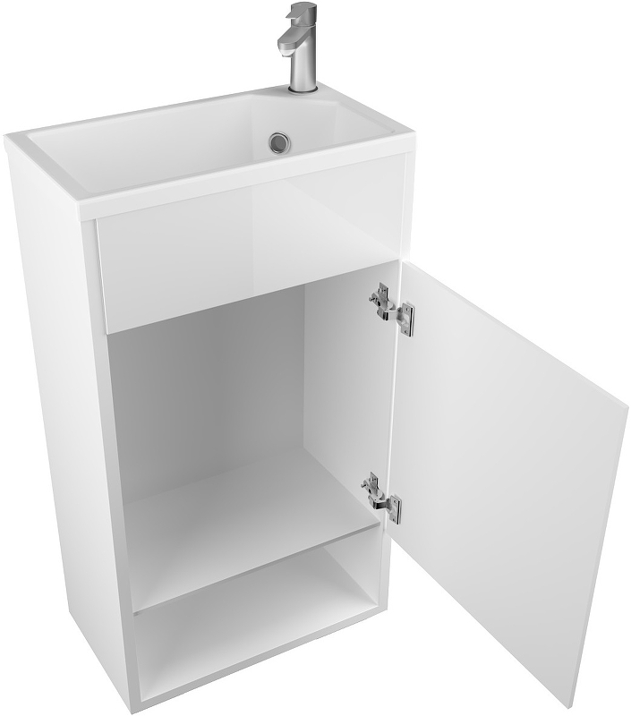 - Система хранения: 1 распашная дверца с механизмом плавного закрывания, полка внутри шкафа, открытая полочки снизу.