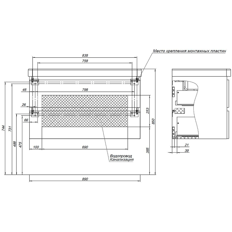 - Габариты корпуса тумбы (ШxВxГ): 890х502х458.