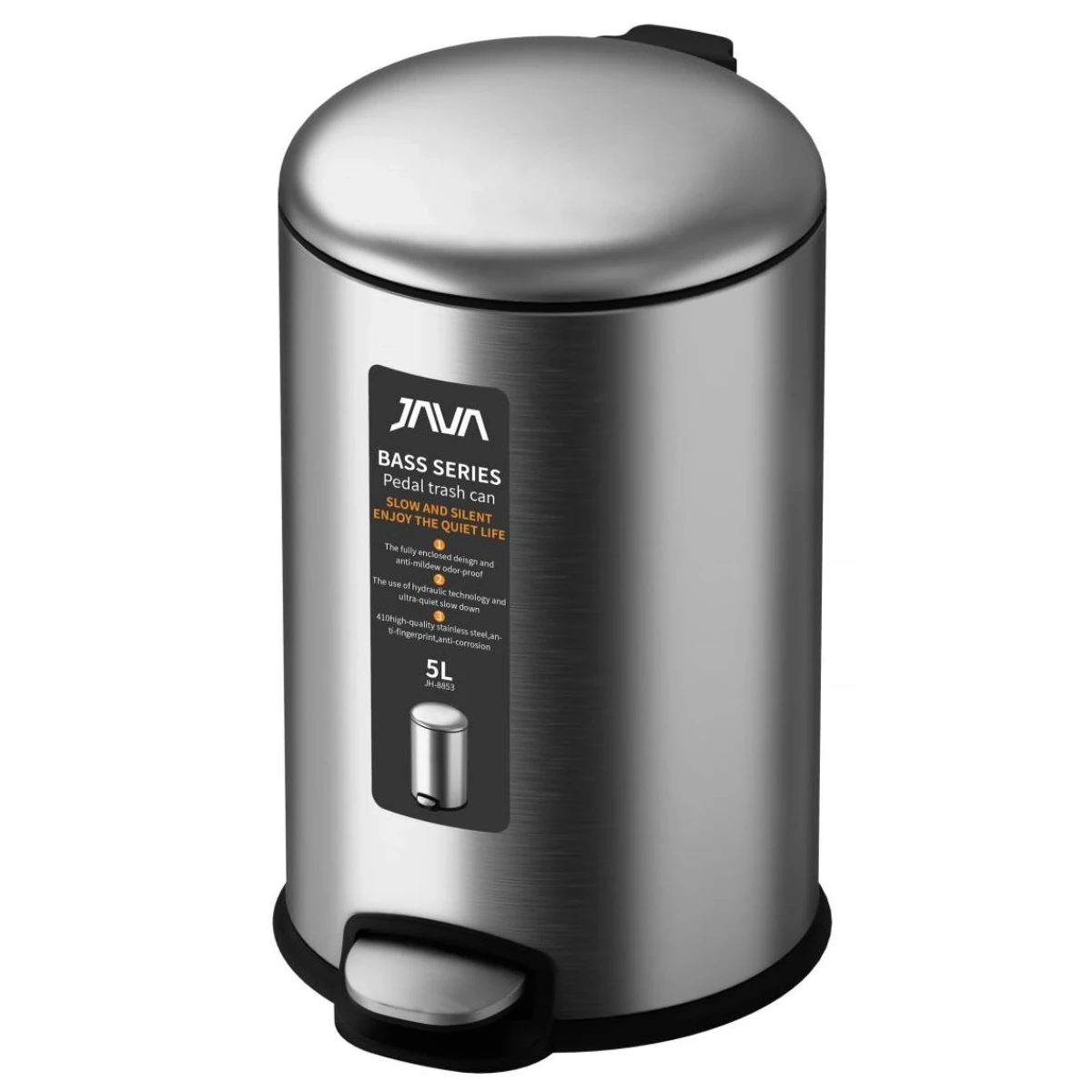 JAVA S-885-5L Ведро для мусора с педалью, с микролифтом, 5 л, цвет хром сатин
