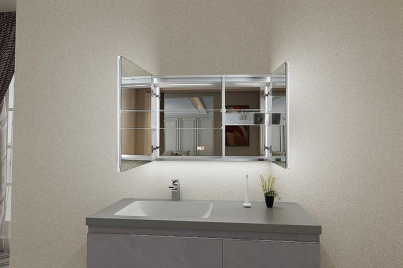 Зеркальный шкаф Esbano ES-5011 110х70 см для ванной с инфракрасным выключателем, с LED-подсветкой корпуса и внутренней подсветкой, с встроенной розеткой, с тремя дверками